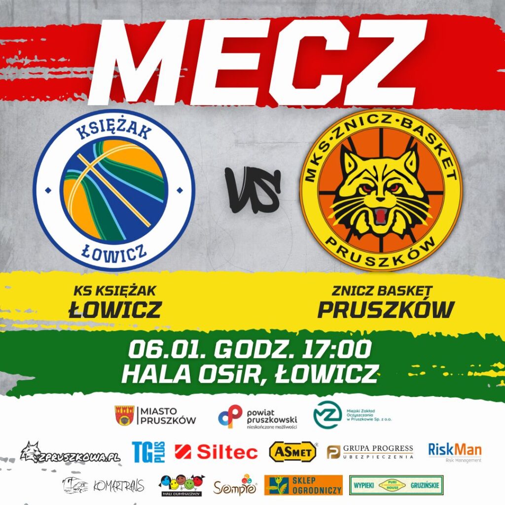 Ju偶 w najbli偶szy wtorek, 6 stycznia, koszykarskie emocje w 艁owiczu! W ramach nadchodz膮cej kolejki ligowej, nasza dru偶yna Znicz Basket Pruszk贸w zmierzy si臋 z KS Ksi臋偶ak 艁owicz.